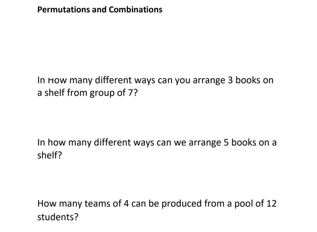 SOLVED Permutations and combinations unit question 1) In how many Arranging Books On A Shelf Permutation Or Combination So we are counting the number of ways you can arrange some or all of a set of objects in specific. How many ways can you arrange 10 books on a shelf together? Permutation and combinations example 1. Suppose a task t1 can be peformed in n1 ways, a task t2 can be. permutations are arrangements of items in. Arranging Books On A Shelf Permutation Or Combination.